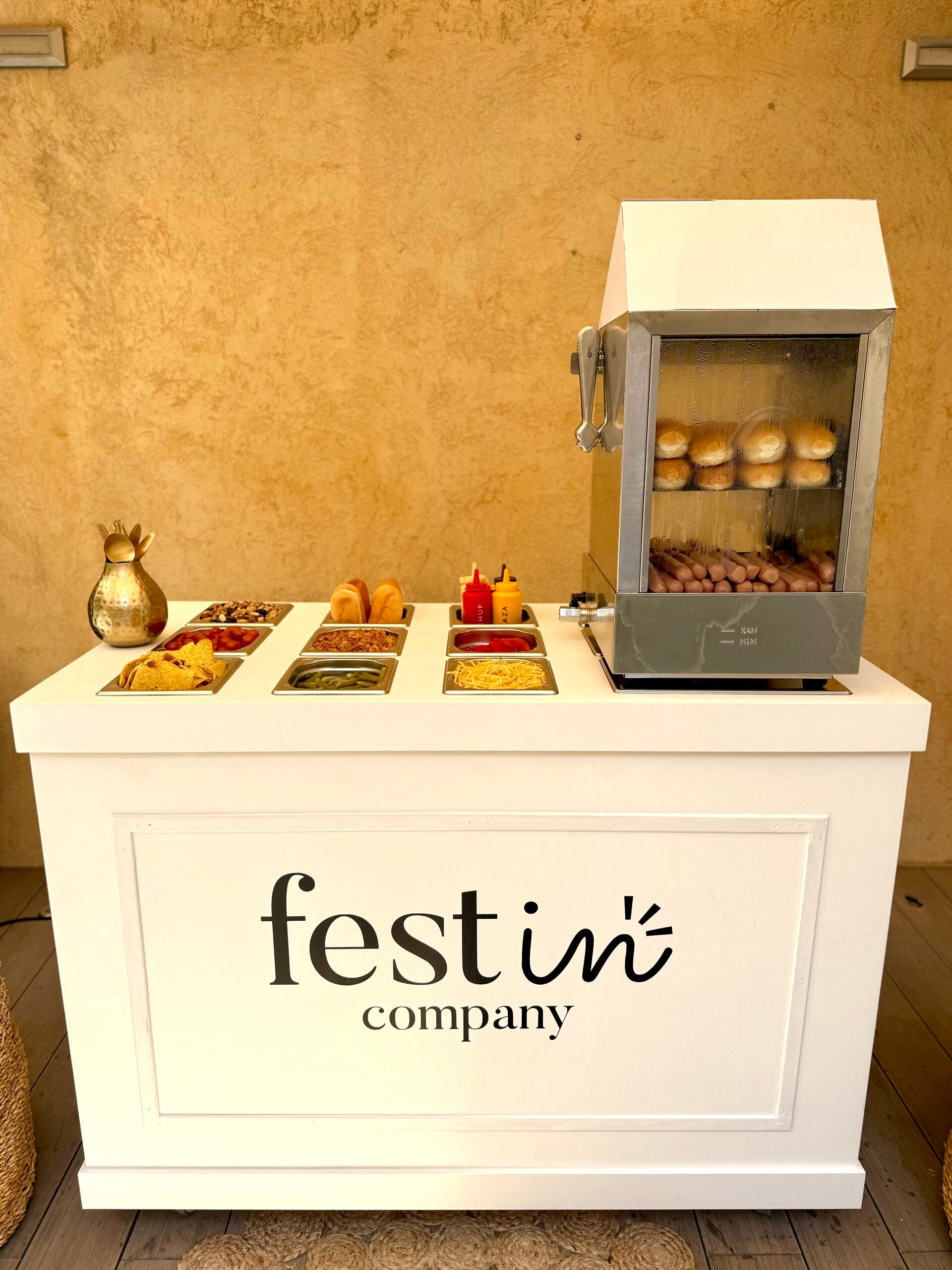 Nuestro carrito incluye 9 tipos de toppings para que cada invitado cree su perrito ideal.